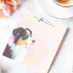 This personalized notepad features a beautiful watercolor Australian Shepherd portrait set against a soft pastel background. The elegant and artistic design is perfect for dog lovers, pet owners, and Australian Shepherd enthusiasts. Customize the text at the top for a unique touch, making it ideal for journaling, note-taking, or gifting.