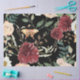 Watercolor artwork with burgundy, pink and yellow floral and foliage with butterfly over a moody black background decoupage tissue paper. Art and graphic design by internationally licensed artist and designer, Audrey Jeanne Roberts, copyright.