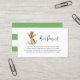 Ask guests to help fill your baby's library. Ask them to bring a book instead of a card with this book request insert. It features watercolor illustrations of a baby giraffe and foliage with a whimsical script. This safari baby shower card is perfect for summer baby showers. Matching items are available.