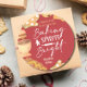 Holiday baking Label in a modern red watercolor design with elegant calligraphy font, space for baking tag line "from the kitchen of , baker's name and Baking Spirits Bright . Use these bakery stickers for your homemade baking business or holiday baking or cookie exchange.