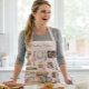 Delight the cook in your house with this personalized apron, featuring a pattern of watercolor baking tools, such as standing mixers, rolling pins and pastry tubes, on a pink background. Near the top, the words "[Your Name's] Kitchen" or other text of your choice appear in editable handwriting script.
