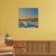 Watercolor bay lighthouse with sunset ocean waves poster