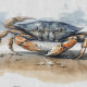 Watercolor Beach Crab, custom Cutting Board