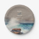 Watercolor Beach Ocean Waves Monogram Wedding Paper Plates
