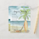 Baby on Board! Baby shower invitation - perfect for a summer baby shower. Beach theme. Watercolor design has a ocean and beach scene with surfboard, palm tree and summer hat.