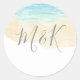 Watercolor Beach Wedding initials Name Favors Classic Round Sticker