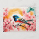 Watercolor Bird In Springtime Cherry Blossoms Postcard