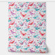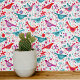 Unique teal green, hot pink, red and white watercolor bird and wildflower pattern. Original art by Nic Squirrell.