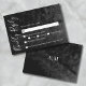 This simple and minimalistic reply card features a black watercolor background on both the front and back. The front side showcases "Kindly Reply" in elegant script down the side, with space for your guests' responses. On back is a simple monogram for the couple's initials. This understated design works seamlessly with many different wedding themes. The black and white color scheme, combined with a sophisticated mix of script typography and serif font, makes it a versatile and stylish choice for any wedding celebration. The minimalistic elegance of this reply card ensures it complements a variety of wedding themes, adding a touch of class to your special day. Watercolor Black And White Wedding RSVP Card