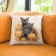 Watercolor Black Cat and Kittens Pumpkin Throw Pillow