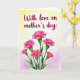 Designed with soft watercolor textures, the card features a loose bouquet of frilly pink blossoms rising from the lower area, with layered petals that feel gently romantic ❤️. Rich emerald stems and slim green leaves weave upward, as if leaning toward each other in a quiet, affectionate gesture. The background fades from a pale, buttery yellow near the top into a light lavender blush toward the bottom, giving the scene a calm, dreamy setting. Centered above the flowers, a flowing message appears in deep maroon lettering, sitting comfortably in the open space. The pinks and greens stay bright yet airy, and the softened paint edges keep everything tender rather than sharp. Small orange-yellow flower centers peek out here and there, adding tiny sparks of warmth like shared smiles 🌼. The bouquet remains anchored at the bottom while the airy gradient fills the rest of the card, with the maroon text floating above the blossoms.