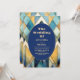 Watercolor Blue and Gold Art Deco Wedding Invitation