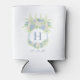 Watercolor Blue and White Hydrangea Crest Can Cooler