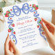 Watercolor Blue Bows & Red Strawberries Party Invitation