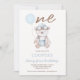 Watercolor Blue Brown Beary First Birthday Invitation