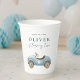 Celebrate in style with this charming watercolor paper cup featuring a vintage blue ride-on toy car and custom text for your little one's special day. Designed with soft pastel tones and a minimalist white background, this cup is perfect for toddler and baby boy birthday parties — especially first, second, or third birthdays.
