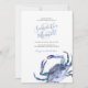 Celebrate in coastal style with this watercolor crab invitation, perfect for a bridal shower or couples shower inspired by beach wedding vibes and summer weddings. Featuring your names in a stylish handwritten script and event details in a classic charcoal serif font, this design sits on a crisp white background adorned with a hand-painted blue crab. The card reverses to a complementary blue tone, tying in beautifully with a coastal wedding theme. Whether you're planning a beach wedding bridal party, beach wedding party, or gathering inspired by coastal wedding ideas, this invitation adds a touch of elegance and seaside charm.