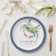 These nautical paper plates feature a stunning sand crab sea life watercolor design, inspired by the beauty of the ocean. A blue crab illustration adds a romantic seafood beach touch, perfect for a seaside rustic beach wedding or a Charleston casual aquarium celebration. Personalize with your names and wedding date for a trendy sketch feast destination wedding. Ideal for coastal, beachy, and elegant marine-themed events. Explore more crabs paper plates at www.zazzle.com/dotellabelle.