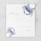 The reverse side reveals the couple’s names and wedding date in delicate script, while the inside showcases a coordinating solid blue color for a polished presentation. This reception stationery piece adds a refined coastal touch to your place settings and table design.