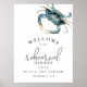 The perfect wedding rehearsal dinner welcome sign for a dinners along the coast, this design features a blue crab in the upper corner in vibrant watercolors. The text pairing is modern with a casual elegance that is both tasteful and hospitable. Personalize the text template with your specific details. This sign is a wonderful choice for rehearsal dinners in coastal areas, or dinners where seafood is being served. This poster is available as an instant download digital product that you can download and print on your chosen poster or sign material.