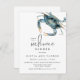 The perfect wedding welcome dinner invitation for a dinners along the coast, this design features a blue crab in the upper corner in vibrant watercolors printed on a post card. The invitation text pairing is modern with a casual elegance that is both tasteful and hospitable. Personalize the text template with your specific details. This invitation is a wonderful choice for dinners in coastal areas, or dinners where seafood is being served.