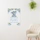 Watercolor Blue White Floral Baby Elephant Baby Shower Welcome Sign. Includes beautiful watercolor blue roses, white flowers and botanical greenery. Blue Text.