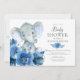 Watercolor Blue Flowers Elephant Baby Shower Invitation