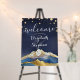 Watercolor Blue Gold Mountain Wedding Welcome Sign
