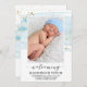 This watercolor blue and gold photo birth announcement is perfect for an elegant baby boy announcement. The luxurious design features a light blue watercolor texture with a splash of beautiful faux gold glitter and a modern calligraphy script font. Personalize the card with a photo of your baby, the baby's full name, birth stats and your names.