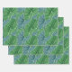 Watercolor Blue Green Teal Tropical Leaves Pattern Wrapping Paper Sheets