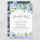 Invite guests to your event with this customizable graduation invitation. It features watercolour floral garlands of blue, purple and white roses, anemones and hydrangeas. Personalize this floral graduation invitation by adding your event details. This hydrangea invitation is perfect for spring and fall graduation parties.