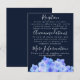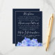 Bright blue watercolor hydrangeas on a dark blue background. Look for matching cards and party products.