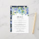 Watercolor Blue Hydrangeas Wedding Menu Card