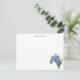 Personalized , elegant Blue watercolor Iris spring flower flat note card with a crisp white background and cute blue and white polka dot back.