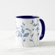 Elegant blue watercolor leaves gracefully wrap around the mug, creating a serene botanical vibe.