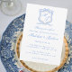 Watercolor Blue Monogram Crest Rehearsal Dinner Invitation