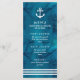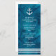 This nautical style wedding menu features a trendy watercolor blue background, and white stripes with a matching white anchor.