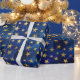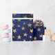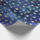Watercolor Blue Pattern with Gold Stars Wrapping Paper