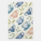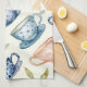 watercolor blue pink tea cups pattern kitchen towel