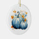 Watercolor Blue Pumpkins & Autumn Leaves Ceramic Ornament