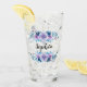Glass tumbler with romantic blue & purple watercolor floral wreath design and customizable name or monogram.