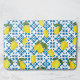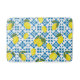 Watercolor Blue Tile Yellow Lemon Watercolor Bath Mat