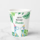 Watercolor Blue Trex Greenery Kids 3rd Birthday Paper Cups