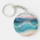 Watercolor Blue White Ocean Wave Custom Photo Name Keychain