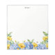 A floral, whimsical and elegant notepad featuring blue and yellow watercolor hydrangeas, peonies, anemones, and foliage on cream background. This notepad will be a perfect feminine accent for your office.