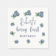 Kids birthday party! featuring watercolor illustration of blueberries with leaves. The text says "berry first".