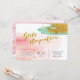Bring your cheerful attitude to a bridal party with this watercolor blush invitation and turquoise gold accents. All information is in sans serif font with custom gold sign