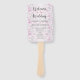 The fans are very pretty and easy to assemble. We utilized the original template and just inserted the names of our wedding party. After the product arrived we noted they read,”Made of Honor” rather than “Maid of Honor”. Upon re-checking the website we noticed the typo is in the original template and was not a mistake on our end. It is too late to return because our wedding is in just a few days but if we had time we would certainly request an exchange. See review above regarding typo.