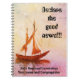 Notebook with a watercolor scenery of a boat in the ocean and the 2024 JW Convention theme "Declare the good news!!!" You can personalize it by adding your name and congregation.