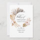 Bohemian wedding invitation with dried pampas grass, palm, monstera, banana leaves and flowers.